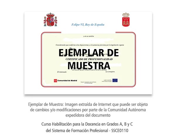 Habilitación para la Docencia en Grados A, B y C del Sistema de FP (SSCE0110) (Curso adaptado al Certificado de Profesionalidad)